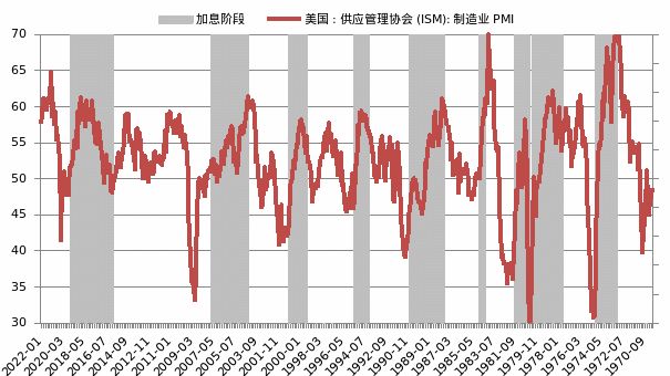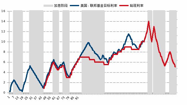 事实上,美联储的政策周期是经济所处周期的伴生,加息往往开始于经济过热,商品价格在过热的需求中倾向于水涨船高。在加息阶段经济增速逐渐放缓,逐渐进入衰退期,进而进入下一轮降息周期。