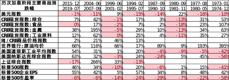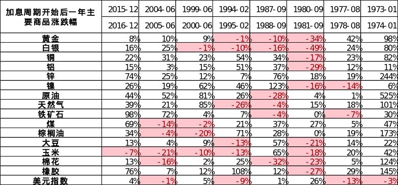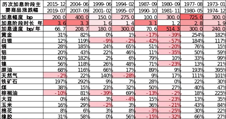 美联储历次加息阶段的市场表现:商品表现偏正面