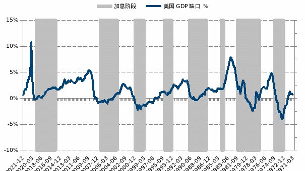 表:历次加息美国GDP缺口高位回落,通胀进一步走高,就业向好